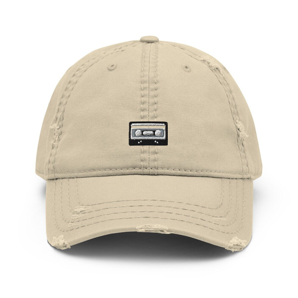 Cassette Tape Embroidered Distressed Embroidered Dad Hat, Frayed Cap Gift