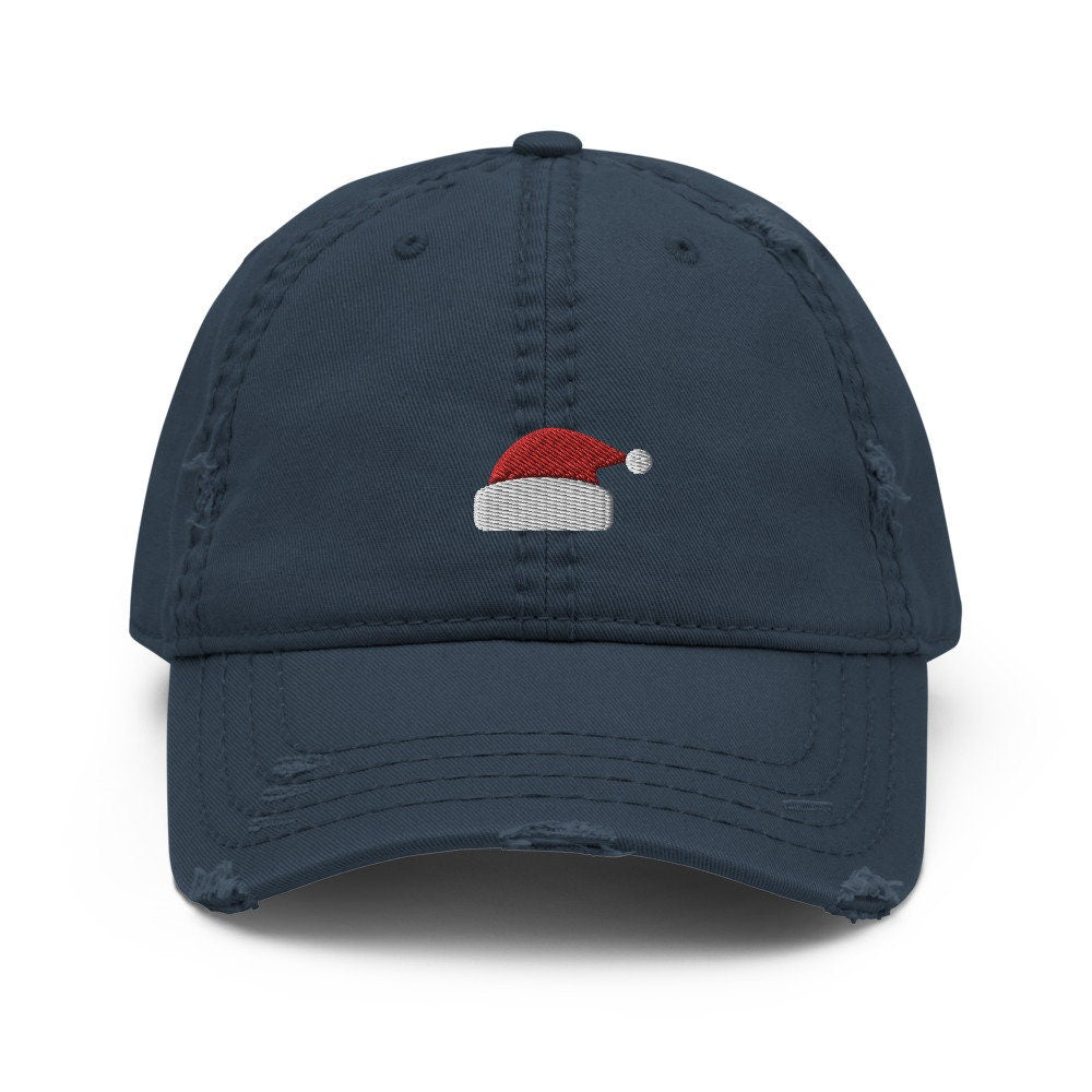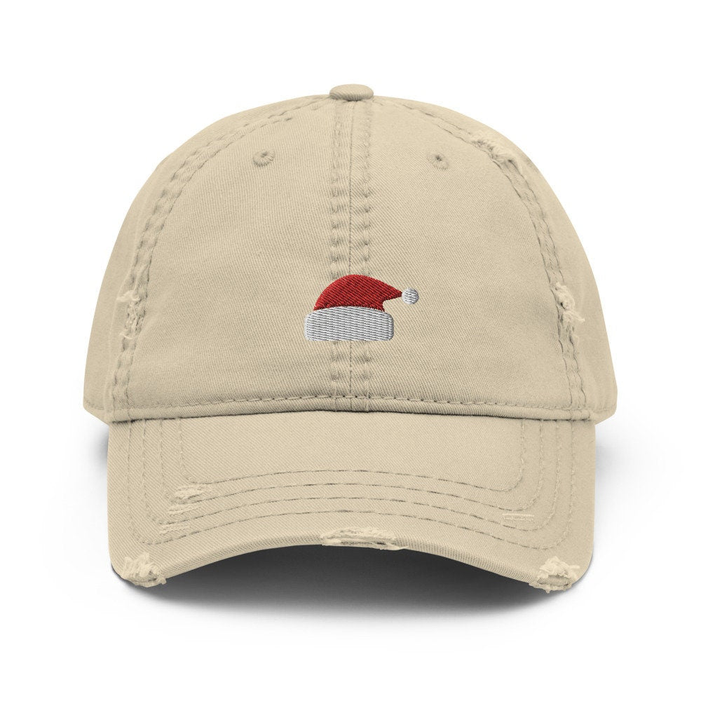 Christmas Santa Claus Hat Embroidered Distressed Embroidered Dad Hat, Frayed Cap Gift