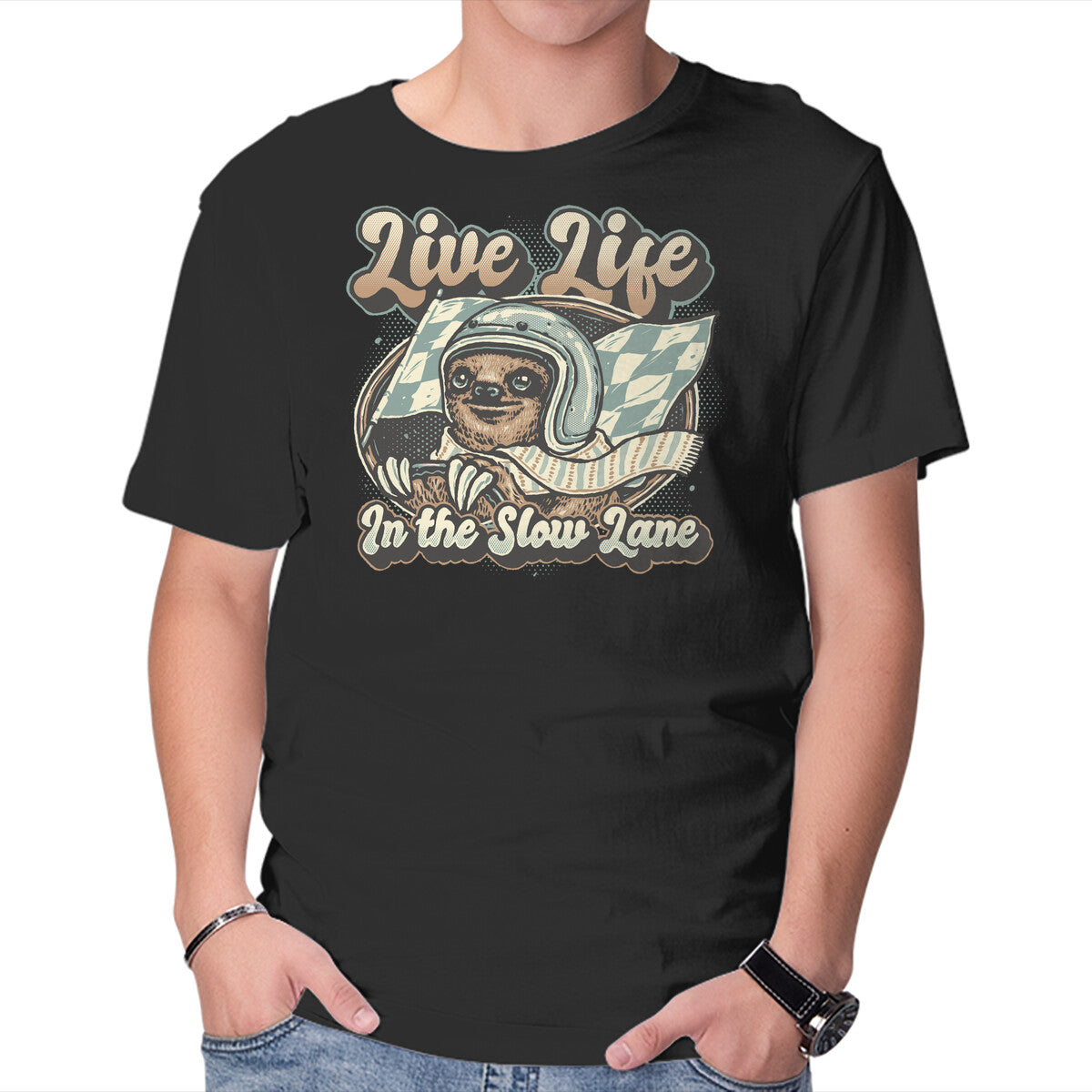 Live Life In The Slow Lane is a great Mens Basic Tee from our amazing collection of custom fandom inspired products. This product was designed by glitchygorilla, who is part of our exclusive pop-culture inspired artist community.