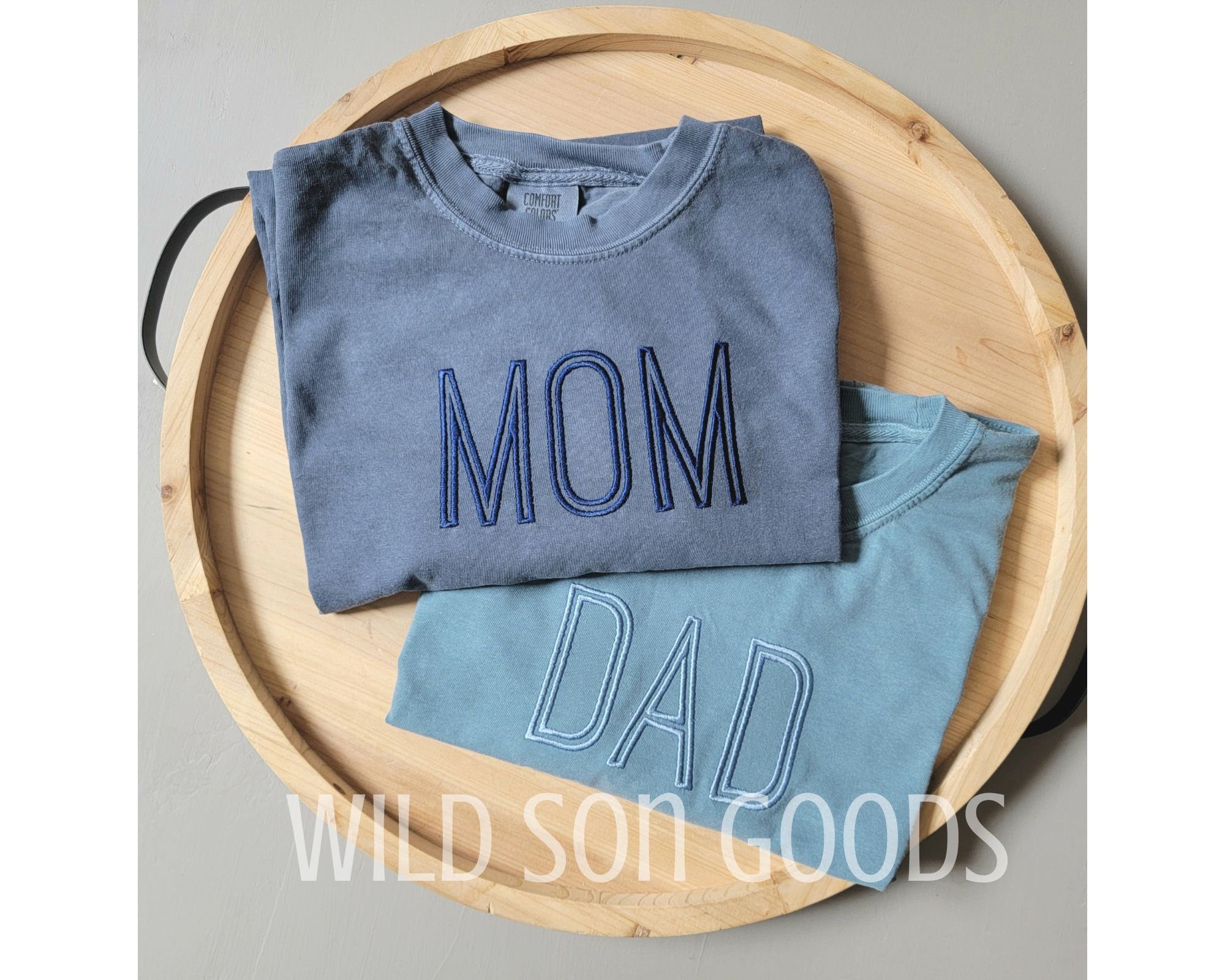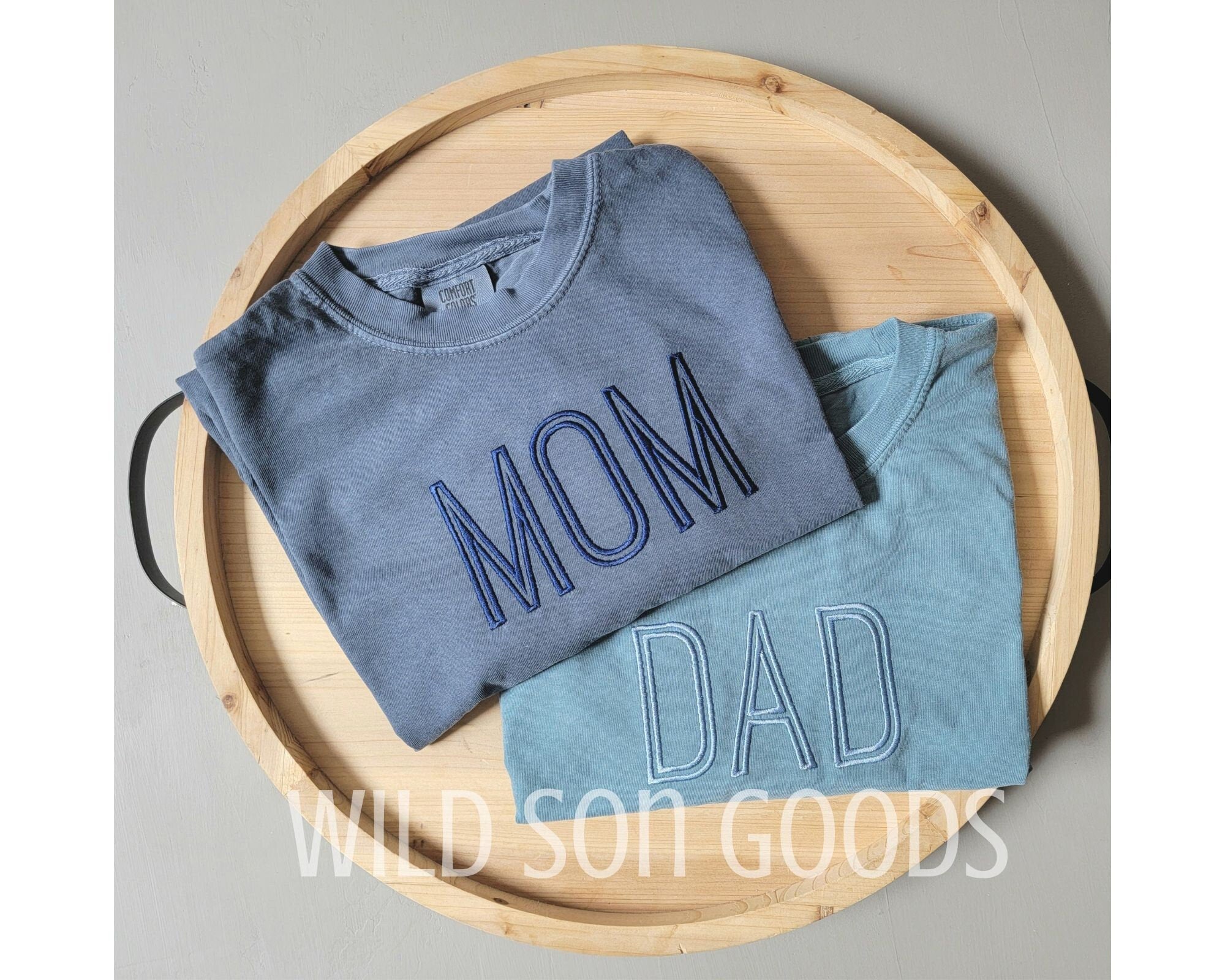 Tall thin outline font mom and dad t-shirts made on Comfort Colors tees. Great gift for parents to be! ** If interested in something other than mom and dad, inform me in the personalization section! Pre shrunk and garment dyed, these shirts get softer as you wash and wear them and last a lifetime! These have a vintage look and a lived in feel! Choose from many t-shirt and thread colors! Care Instructions:Machine wash cold gentle cycle.Tumble dry low.No bleach.