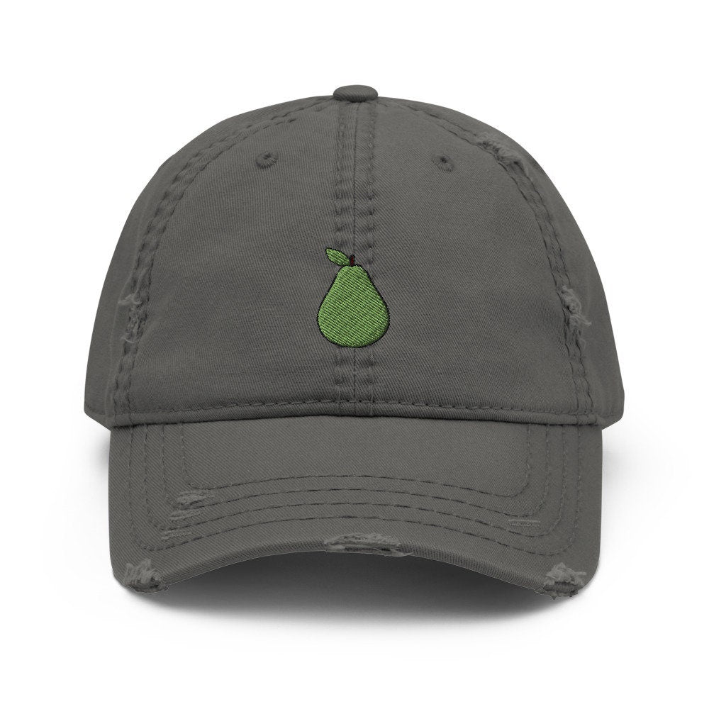 Pear Fruit Embroidered Distressed Embroidered Dad Hat, Frayed Cap Gift