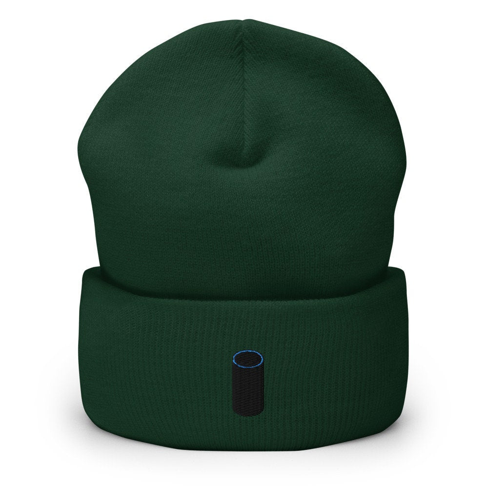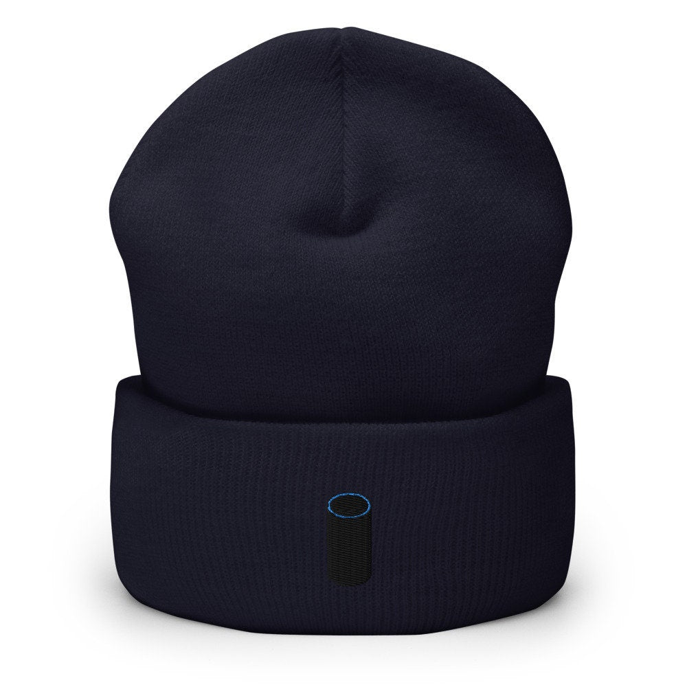 Smart Speaker Embroidered Beanie, Handmade Cuffed Knit Unisex Slouchy Adult Winter Hat Cap Gift