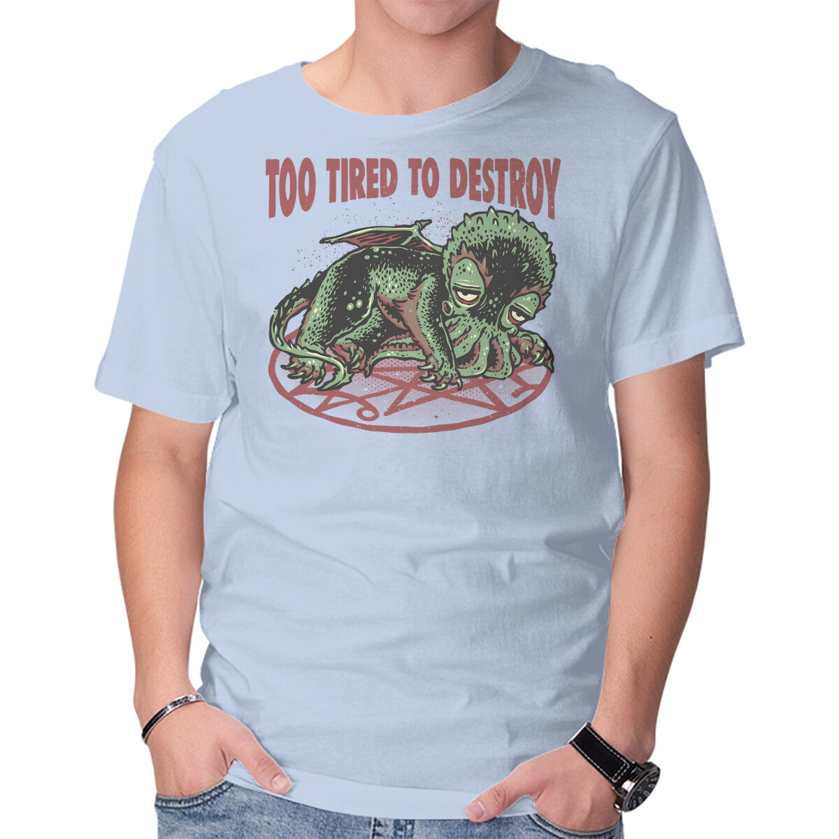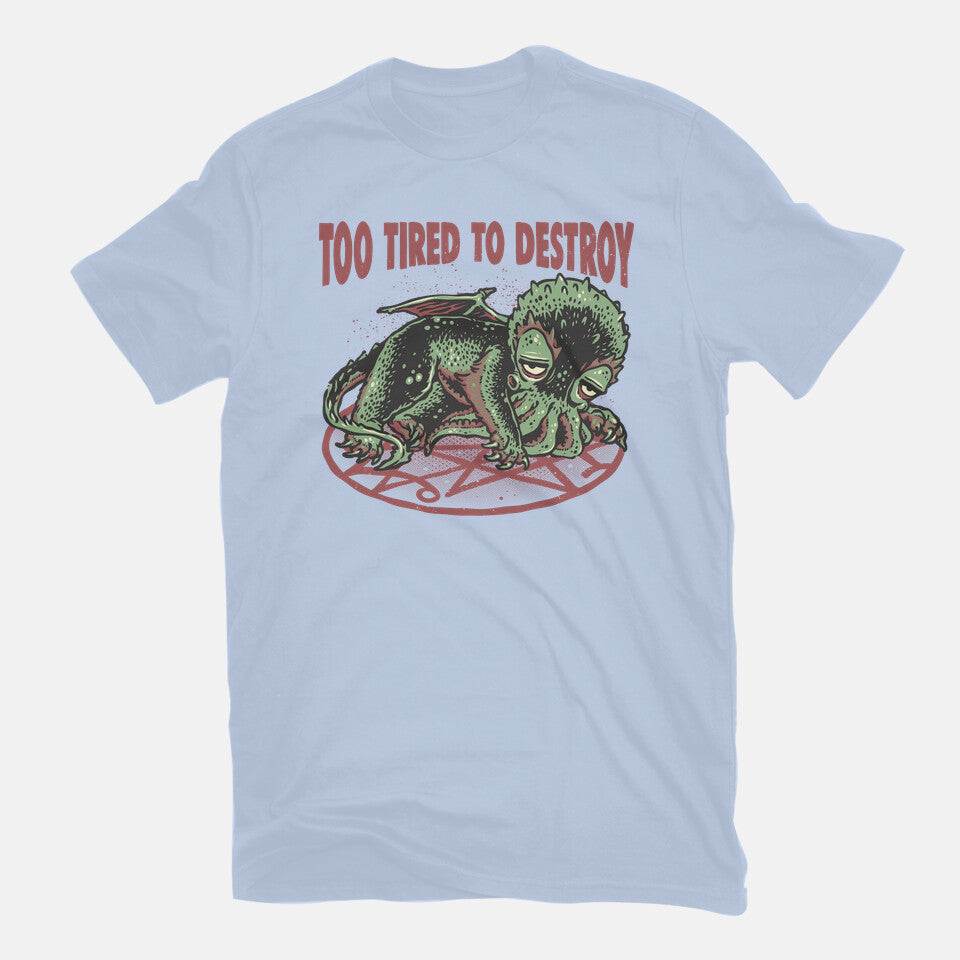 Too Tired To Destroy is a great Mens Basic Tee from our amazing collection of custom fandom inspired products. This product was designed by glitchygorilla, who is part of our exclusive pop-culture inspired artist community.