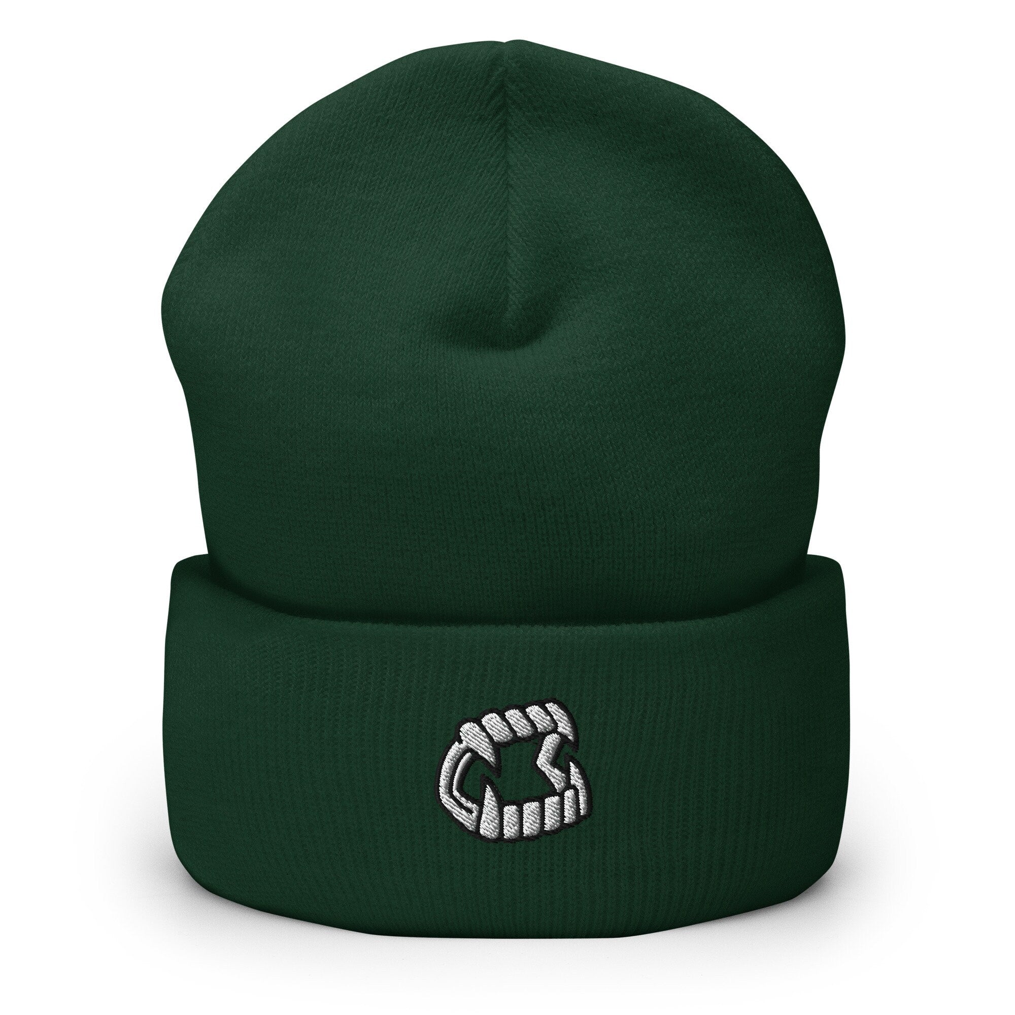 Beanie season is here, and that means it’s time to bundle up! This year, add a little fun to your winter fashion with our vampire teeth beanie. The embroidered design on this soft knit hat will keep you warm and make you the life of any party. So put on your fiercest attitude and grab a beanie that bites!🧵 Product DetailsOur snug, form-fitting Premium Beanies will help you step up your cold weather fashion game! They’re the perfect accessory to keep you looking great when the weather turns cold. Made from 100% turbo acrylic, they’re soft, warm, and hypoallergenic. Plus, they’re unisex so everyone can enjoy their comfort. Best of all, they’re hand-washable so you can keep them looking fresh season after season!• 100% Turbo Acrylic • 12″ (30 cm) in length • Hypoallergenic • Unisex style • Hand washable�/p>�/p>�/p>